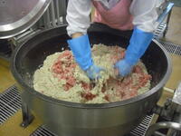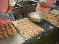 わふうハンバーグは、5名ほどで約700個を手作りしました。こねて、成型する作業は大変でしたので、「おいしい!」とたくさんの児童に言ってもらえたのでとても嬉しかったです。