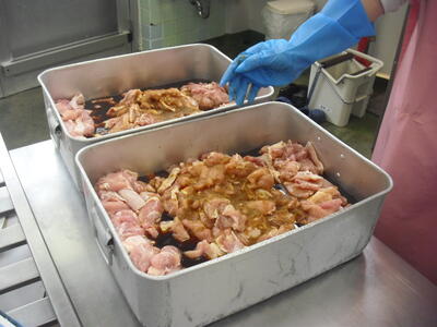 とりのてりやきは、新鮮で立派な鶏肉が届きました。しょうゆベースのタレに漬け込み、オーブンで焼きました。ご飯のおともになる1品でした。