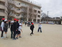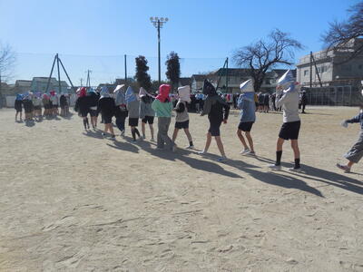 1月30日のなわとび集会に向けて、ペア学年で長なわとびの練習が行われています。上の学年が、下の学年に教えてあげています。今日の業間は、2・4年生の練習です。本番まで頑張って練習していきましょう!!