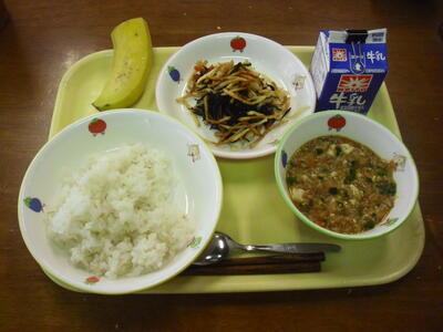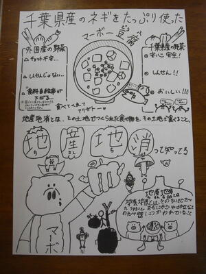 今日の給食は、5年2組が考えた「千葉県産のねぎをたくさん使ったマーボーどうふ」でした。