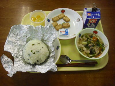 今日の給食も、どのクラスでもおいしそうに食べている様子が印象的でした。わかめおにぎりは、給食室で4名ほどで680個ほどを手作りしました。何人で作ったかのクイズをしてもらったところ「えー!たったの4人なんだ!」「時間内に作れるのがすごい!」と驚いた児童が何人もいました。がんばって作ったので、食べてもらえてうれしいです。