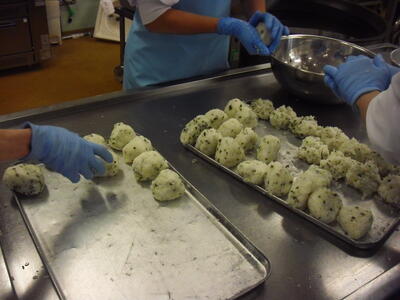 よもぎだんごのきなこあえは、給食室で手作りしました。