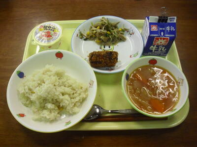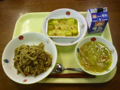今日は、6年1組が家庭科の学習で班ごとに献立を作って、クラスで1位になったメニューです。
