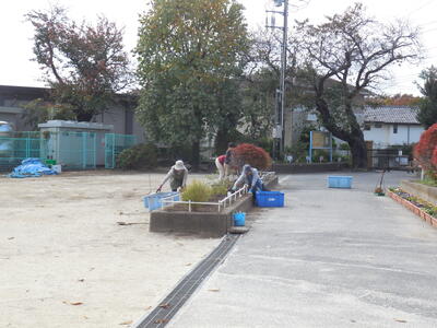 今日は第6回花ボランティア活動が行われ、雑草が生えていた花壇がきれいになりました。午後に、栽培委員会のみんなが菜の花の種をまきます。きれいに咲くのが待ち遠しいです。(HP「花ボランティア」のページもご覧ください。次回は12/3(水)10時~、参加者募集中です!!…希望者は教頭まで)