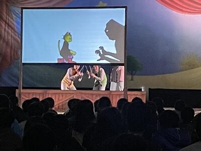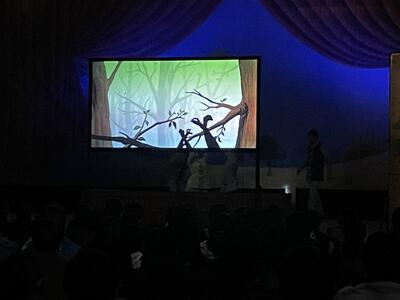 暗幕で暗くなった体育館で、さまざま道具や光を上手に使っての演出や、手で様々な動物を表現していく姿に驚きの声を上げている児童が多かったです。
