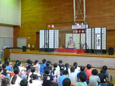 7月6日(水)の3・4時間目に、落語教室がありました。「ぞろぞろ」、「動物園」、「てんしき」の演目を聞いたり、玉すだれの体験をしたり、何人かが小話を演じたりと、楽しいこと満載の2時間でした。