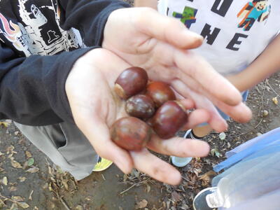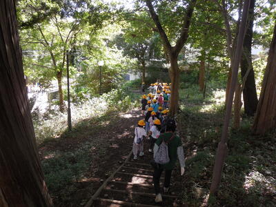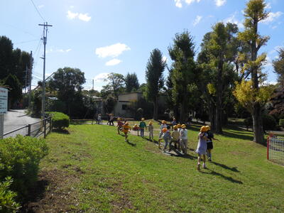今日は、1年生が学校の近くのじゅんさい池緑地の中にある公園へ探検に出かけました。公園では、遊具で遊んだり、木の実を見つけたりしました。公共の場所でのルールやマナー、みんなで仲良く遊ぶ協調性も学習しました。交通安全にも気をつけて歩きました。たくさん学習できました。こんな学習なら毎日でもOKですね\(^o^)/