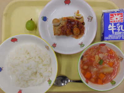 ごはん ミートローフ ミネストローネ ぶどう 牛乳