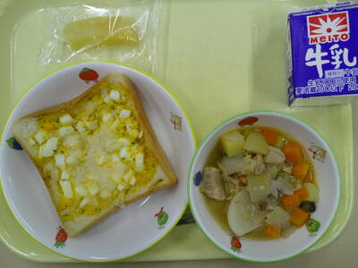 たまごトースト ポトフ 冷凍パイン 牛乳