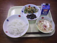 レバーのこうみあげは、レバー嫌いの児童も食べることができた様子でした。あるクラスでは、お皿にたくさん盛って食缶が空っぽのクラスもあったようです。「お肉は全部大好き!」と言いながら食べている児童もいました。