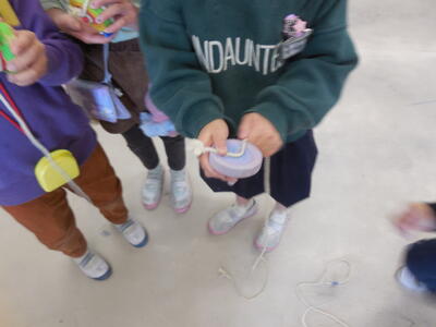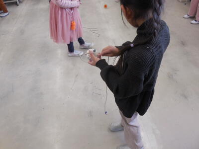1年生は、生活科で「昔遊び」の学習をします。今日はこま回しに挑戦です。なかなか回せなかった子も練習するうちに何とか回せるようになってきました。ひもを最初に「ギュッ」と巻き付けるのがコツですね。楽しく遊…いや、学習できました\(^o^)/