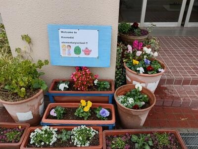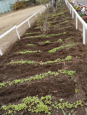 今日は、第7回花ボランティア活動が行われました。前回蒔いた菜の花の種が発芽しています。