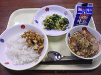 なっとう和えは、しょうゆ、からし、みりんを合わせたドレッシングで味付けをしました。ご飯に良く合いました。