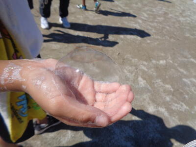 はじめはうまく作れなかった子も、だんだんとひもの使い方に慣れ、次第に大きなシャボン玉を作れるようになりました。