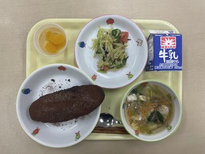 ココア揚げパン キャベツときゅうりの昆布和え