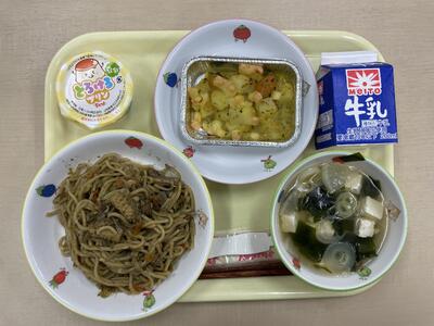 三色野菜のたくあん和え 大根の味噌汁 牛乳 です。
