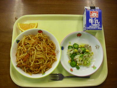 ミートソーススパゲッティは大人気で、どのクラスもおかわりをしている様子でした。