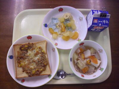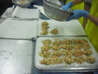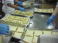 カレーツナトーストは、6名ほどで約670名分を手作りしました。カレー味が食欲をそそりました。ツナとコーンの風味もよかったです。