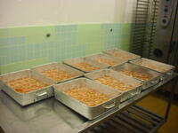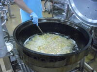 給食室内は気温や湿度がとても高かったですが、おいしく調理してくださいました。