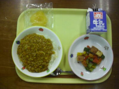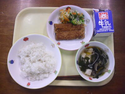 さんまのかばやきは、カラッと仕上がったさんまに、しょうゆベースのタレがしみこんでいてとてもおいしかったです。暑い中、調理員さんたちが頑張ってくれました。