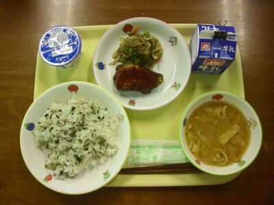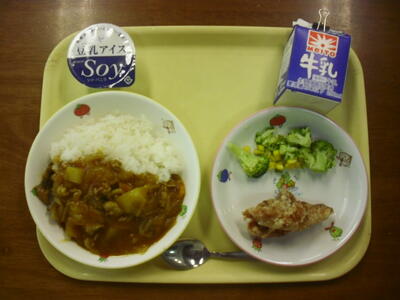 七夕は明日ですが、4年生も一緒に七夕給食を食べられるように1日早くしました。