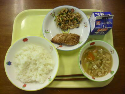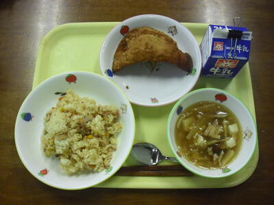 キムチチャーハンは、辛さが控えめで低学年の児童もおいしそうに食べていました。