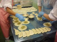 あげぎょうざは、とても大きく見た目がインパクトがありました。約4名で580個ほど手作りしました。