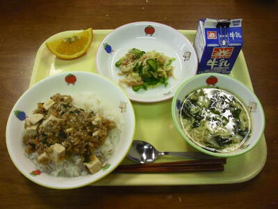 マーボーどんは、程よい辛味がクセになり食が進みました。低学年の児童もおいしかったようで、「おかわりしたよ!」と嬉しそうに教えてくれました。こちらまで嬉しい気持ちになりました。