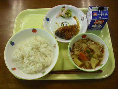 肉じゃがは、人気メニューの1つです。おかわりをしている児童が見受けられました。食材が細かく切られていて食べやすく、じゃが芋も中まで火が通っておりホクホクでおいしかったです。