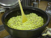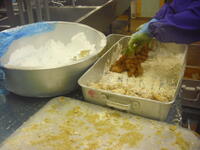 納豆は13.5kg使用しました。混ぜる作業は全身を使うためとっても大変です!ですが、みんなからたくさんおいしいと言ってもらえたのでよかったです!