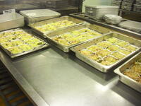 こめこのマカロニグラタンは、3名ほどで約700個を手作りしました。おかわりじゃんけんをしているクラスがいくつか見受けられるほど好評でした。