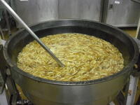 ↓大きな釜2つ分でカレーを作りました(写真から見て左側でもカレーを作っています)。