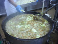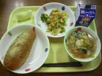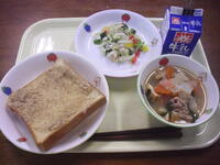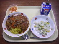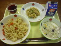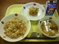 キムチチャーハンは、高学年のクラスの様子を見たところ、たくさんよそって食べている児童がたくさんいました。辛さについて聞いてみたところ、辛さは気にならずに食べることができたようです。辛い食べ物が苦手な児童には、無理して食べないように伝えました。