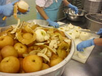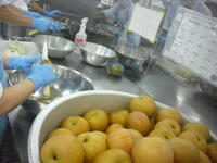 3名で88個の梨の皮むきをし、1/8カットで提供しました