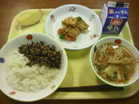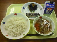 さんまのまつまえには、中骨まで食べられるくらい、しっかり煮込まれておりおいしかったです。低学年の教室のようすは、苦手なお魚を一生懸命骨をとりながら食べている児童が多かったです。中には、中骨まで「おいしい!」と言いながらボリボリと食べている児童が何人もおりました。骨は、食べる場合はよく噛んで食べるように伝えました。