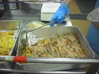 今日は、「きのこの日」にまつわる給食であったため、デミグラソースに3種のきのこを入れて作りました。