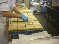 セサミトーストは、5名で約700個を手作りしました。甘くておいしいセサミトーストを、美味しそうにほおばる児童の姿が印象的でした。