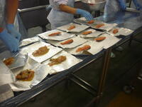 たまごやきのかにかまあんかけは、3名ほどで約700個を手作りしました。卵焼きを焼いた後に、具がたくさん入ったあんかけをかけて提供しました。
