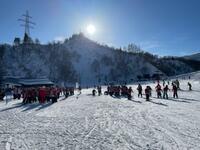 2回目のレッスンでしたが、滑れるようになっていく児童の順応性には驚くばかりです。リフトにのるグループも増えてきました。