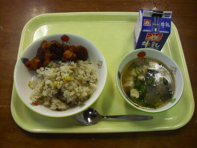 レバーのケチャップあえは、本校の人気メニューの1つです。レバー嫌いの児童でも食べやすいようで、よく食べている様子でした。