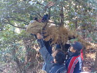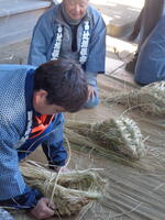 子供たちは、保存会の皆さんに積極的に質問をしたり、熱心に大蛇を作る様子を観察するなど、しっかりと見学をしていました。