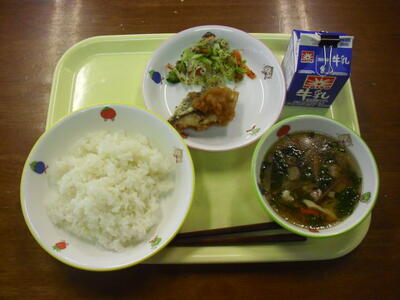 さばのみぞれあげは、カリッと揚げたさばに、さっぱりしたゆず味の大根おろしを添えました。さば本来のうまみが合わさっておいしかったです。
