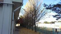 今日から12月です。裏門付近のイチョウの木は葉がほぼ落ち、黄色い絨毯のようになっています。玄関前にあるモミジは上から紅葉し、赤からオレンジそして一部残る緑へのグラデーションがとても美しいです。真っ赤になるまでまだ楽しめそうです。(イチョウの奥にも同様に色づいたモミジがあります。)