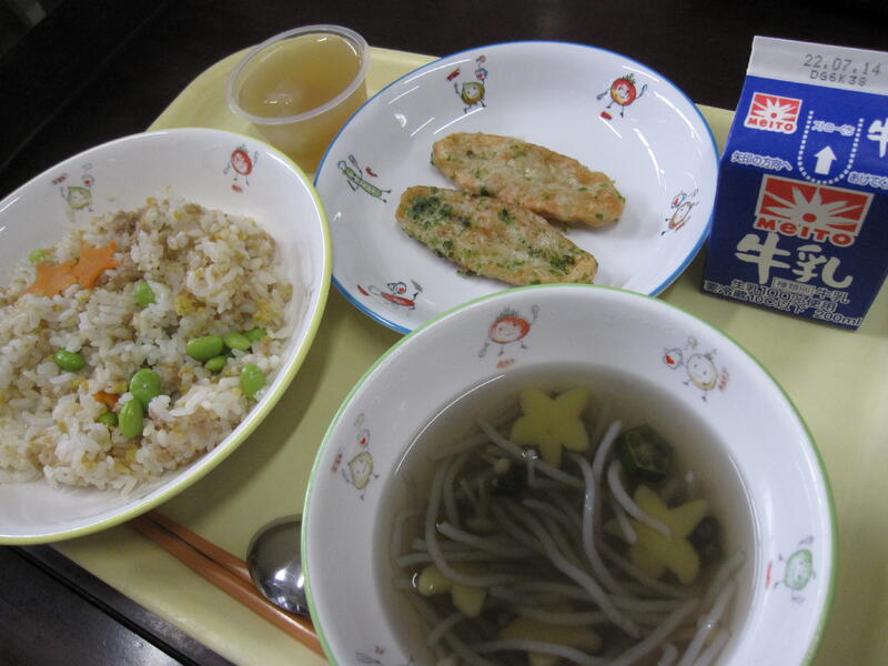 今日から給食が始まり、通常の学校生活が戻ってきました。今日の給食は、チキンカレーとひじきの炒め煮でした。久しぶりの給食準備も手際よくでき、ゆっくり味わう時間が取れていたようです。