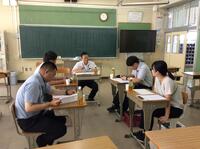 明日と明後日で前期期末テストが行われます。5時間目の3年生はテスト勉強と先生への質問の時間でした。教室内は各自テスト勉強、質問がある人は廊下で控えている教科の先生のもとへ。3年生は真剣な眼差しです。今日一日、最後の確認をして、テストでは持てる力を発揮できると良いですね。応援しています。