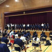 全校集会では、夏休みに広島へ行った「平和学習報告」、先月行われた英語スピーチコンテストで入賞した「スピーチ発表」、部活動の新部長紹介があり、終業式の中では旧生徒会本部役員からの挨拶がありました。プレッシャーもある中、代表に選ばれ、代表として活躍する姿は誇らしいです。今後の活躍にも期待しています。