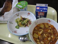 【メニュー】 ココア揚げパン、チリコンカン、イタリアンサラダ、ヨーグルト