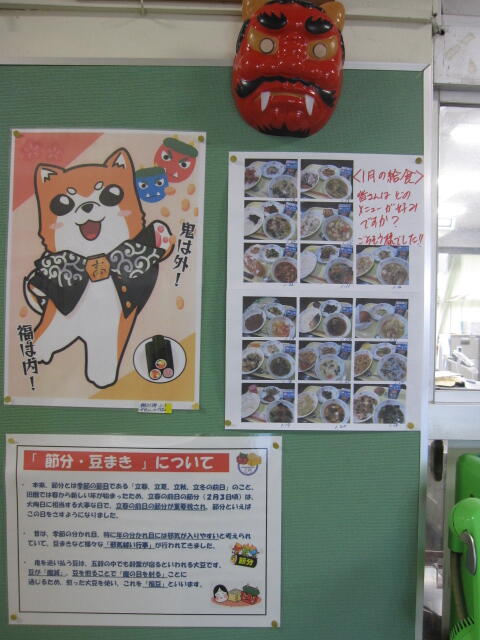 ”こうワンが豆まきをしているポスター”(2年美術・イラスト部N作)