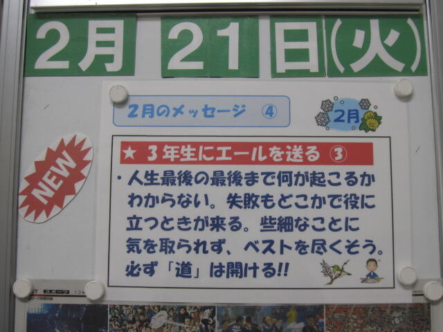これまで積み上げてきた成果を発揮してください。1,2年生は、2/24(金)に到達度テストが続きます。
