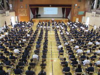 7月から始まる夏の総合体育大会やコンクールに出場する部活動ごとに目標と意気込みを全校生徒の前で発表しました。